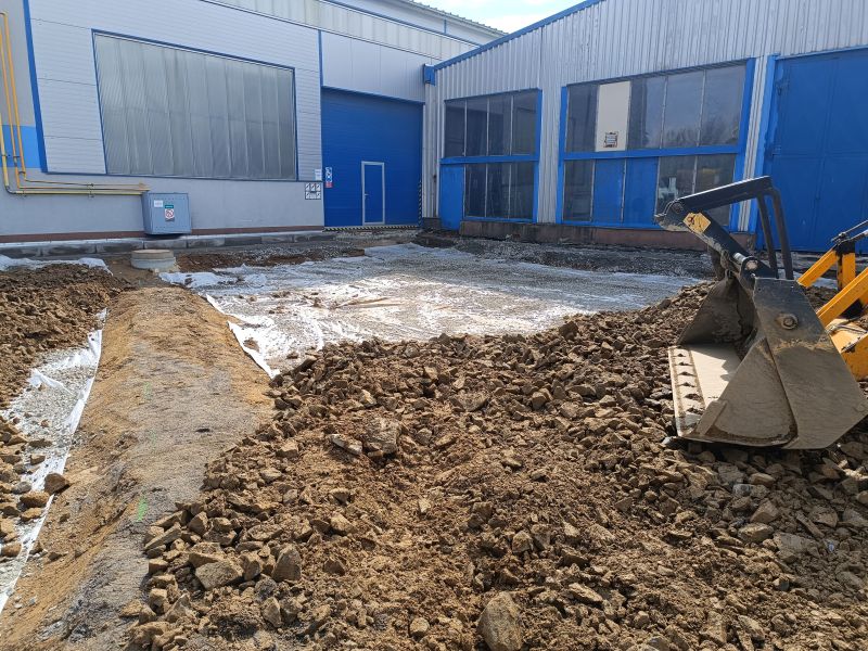 První z velkých projektů jsme zahájili již s nástupem jara - šlo o rekonstrukci zpevněných ploch za výrobní halou Kotlárna a před výrobní halou Packo. Interval zhotovení se rozprostřel mezi měsíce březen až červen 2025 a zatímco v prvním případě šlo o celkovou plochu 2 220 m2, v tom druhém o 530 m2.