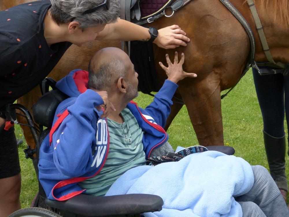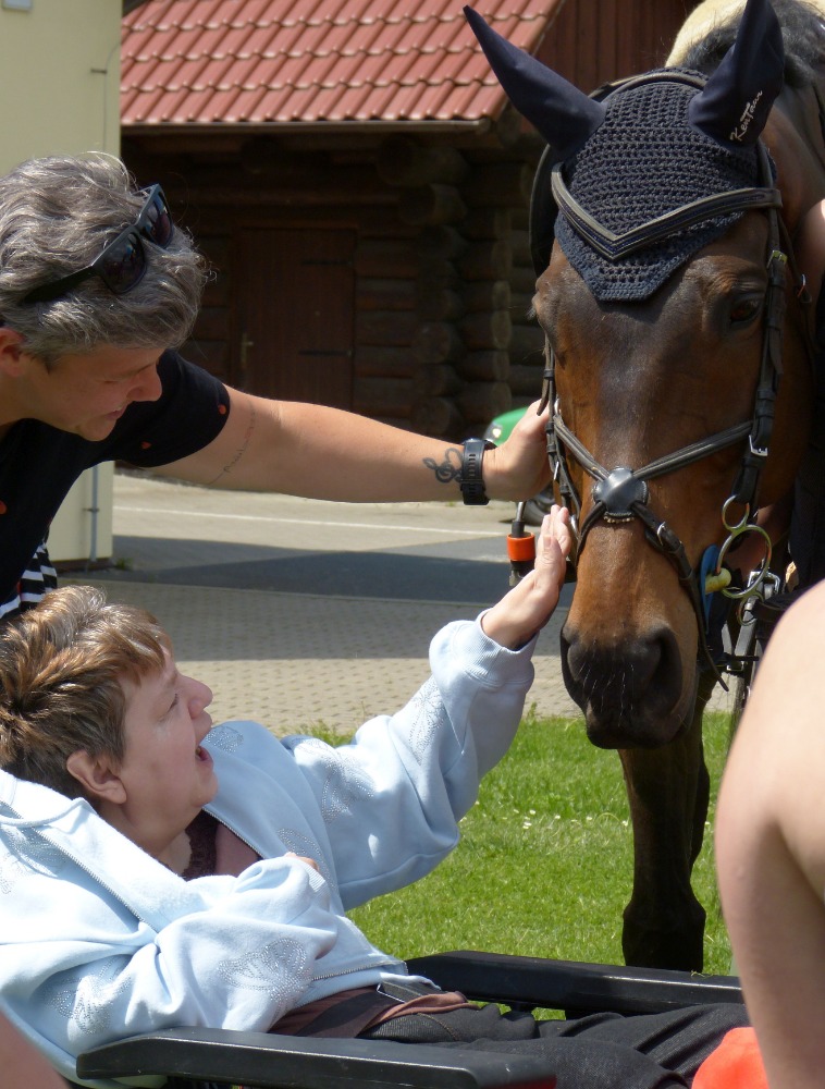 Tzigane du Berlais společně s klisnou Evitou udělali krásný den skupině dospělých osob se zdravotním postižením z Domova sociálních služeb ve Slatiňanech, kteří pravidelně přijíždí na týdenní pobyty do Bohdanče u Zbraslavic.