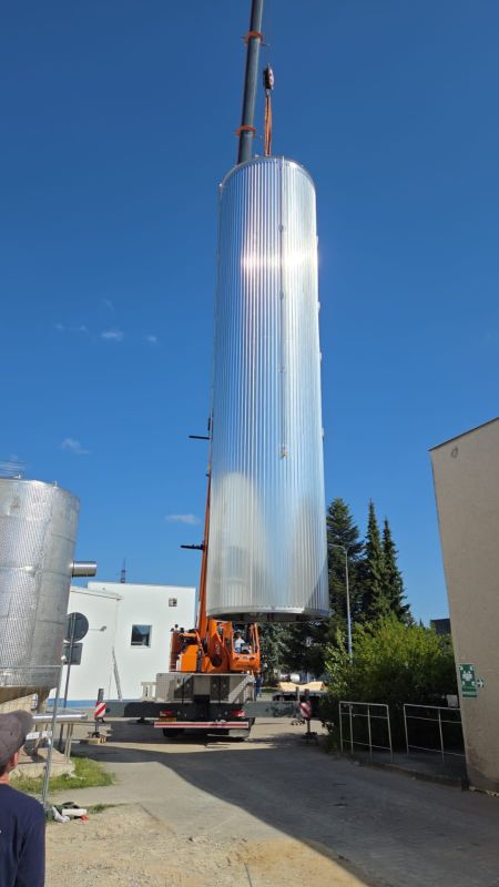 Stejně tak jsme jako součást dodávky zajistili nadrozměrnou dopravu, ustavení, ukotvení a nastrojení nádob o pochůzné plošiny a žebříky.