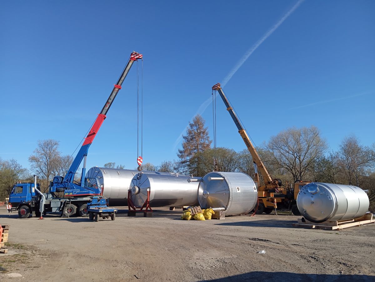 Další tři "drobečkové", tentokrát o objemech 25 m3, 50 m3 a 100 m3, ve venkovním provedení tzv. na sukni s celoplášťovou izolací, dodávané včetně žebříků a obslužných plošin, opustily brány CHARVÁT Pacovských strojíren. A nejen jejich odjezd a převoz, ale i instalace byla velkolepá, o tom se můžete přesvědčit v galerii.